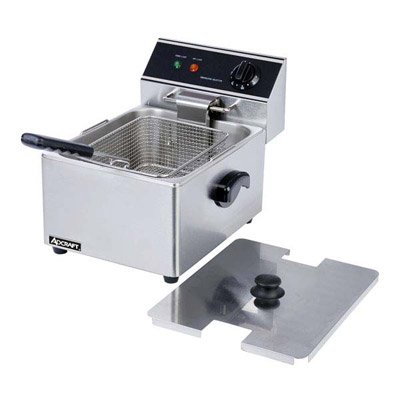 Adcraft Single Tank Countertop Fryer |15 lb tank capacity|Cooking capacity 15 lb per hour|Thermostat control with 120°-375°F temperature range|This Adcraft countertop fryer includes fry basket|UL listed|NSF certified|Stainless steel countertop fryer|11-3/4"W x 11-3/4"H x 16"D
