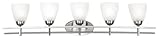 This contemporary-styled five light bathroom fixture will lighten and brighten up your bathroom. Features a brushed nickel finish and marbleized glass. Brushed nickel finish. Marbleized glass. Takes five 60 watt bulbs (not included). 41 1/4" wide. 8 1/2" high.