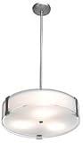 Included: 6"+16"+22" Rods (Smallest height with included rods is 12.75" and max height is 50.75". Different heights available with included rods.) 10ft Cord Slope Adapters Optional: Rods up to 10ft. Available in Fluorescent. Finish: Brushed Steel - Glass: Opal Lamp Type: Medium Base
